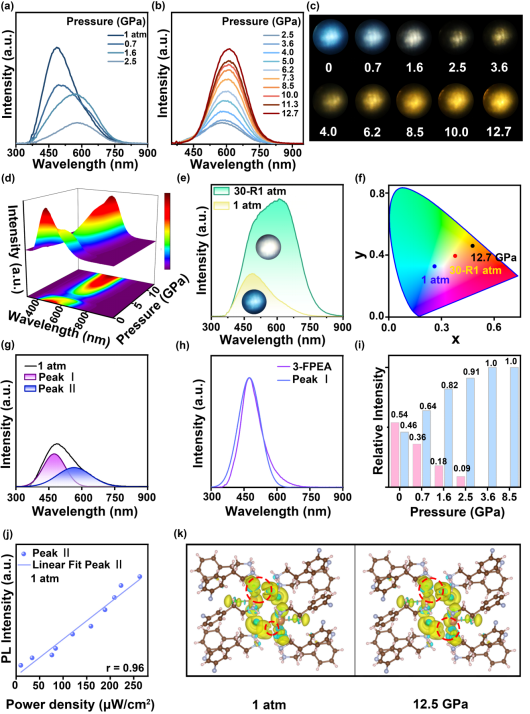 近日,竞彩足球比分-竞彩足球比分预测 高压与超硬材料国家重点实验室肖冠军教授等人在零维无铅有机-无机杂化金属卤化物材料[3-FPEA]6(Sb2Cl10)*2Cl的高压发光调控研究中取得了进展。实现锑基杂化金属卤化物[3-FPEA]6(Sb2Cl10)*2Cl压强诱导发光的同时,还实现了单组分白光发射的常压截获,主要归因于有机阳离子构的空间位阻提高相变势垒,进而导致卸压不可逆。此外,高压下样品表现出从蓝光发射到黄光发射的显著压致变色,这与压力下有机组分向无机组分的能量转移有关。相关研究成果以“Pressure-Induced Emission Luminogens from Antimony Chloride Dimers toward White-Light Emission Harvesting”为题发表在《Laser & Photonics Reviews》上。