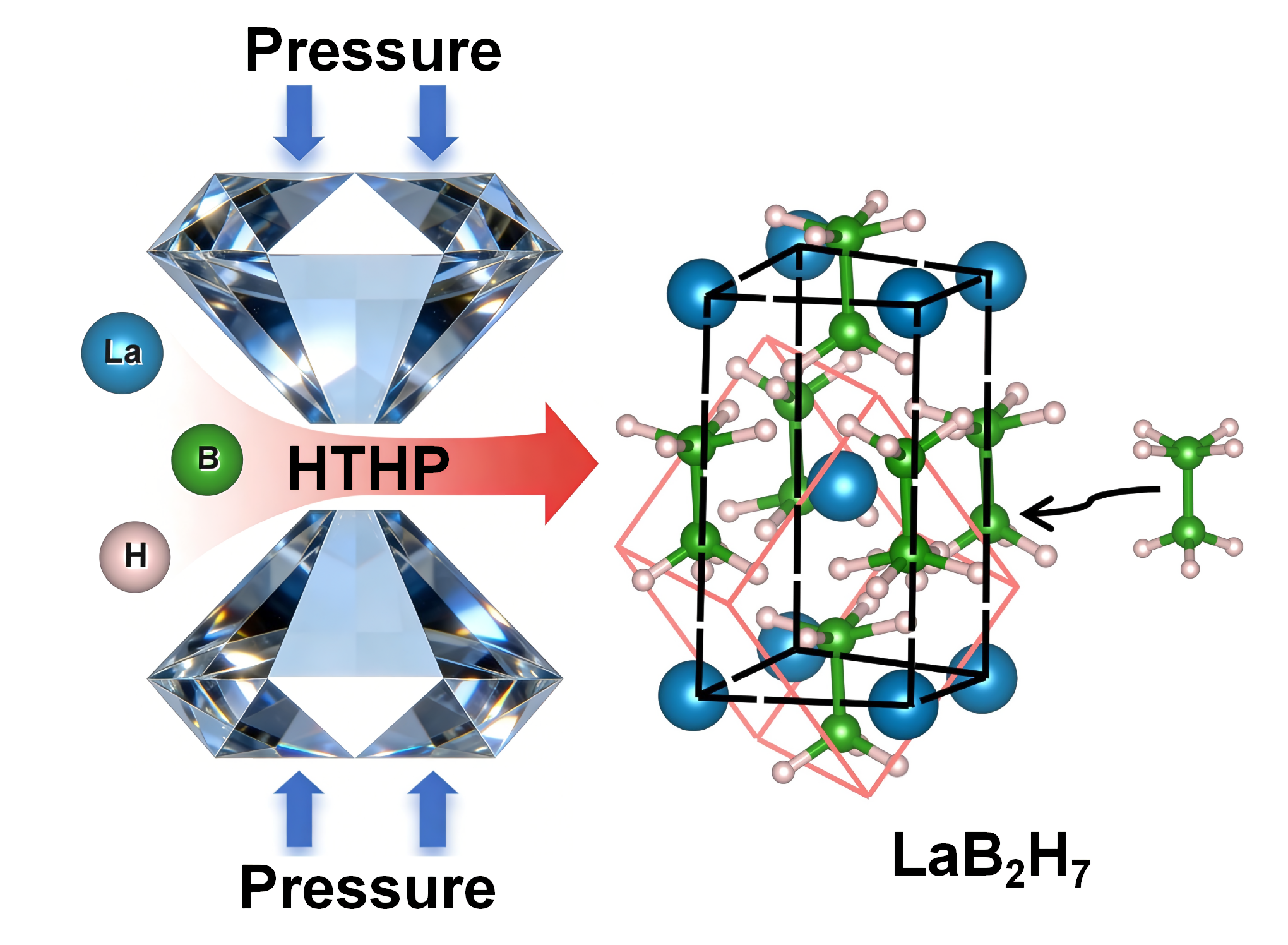 1 高压高温条件下合成P21/m-LaB2H7示意图