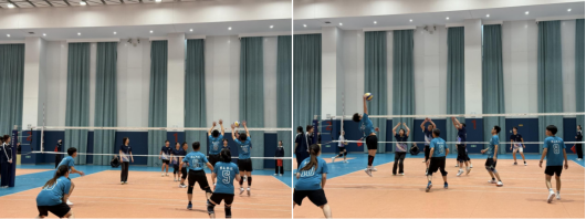 党委书记、主管研究生工作副书记亲自动员,鼓励师生以赛促练、以赛强体,将科研工作中的严谨态度融入体育竞技。备赛期间,队员们充分利用课余时间刻苦训练,从发球精准度、接传配合到战术演练,每一个环节都反复打磨、精益求精。马玉刚、周洪雷、张奕楠、宋乾等教师主动带头参训,与辅导员、学生队员一同挥汗如雨,在训练中践行“师生同频、教学相长”的理念,既筑牢了技术与默契的双重基础,也为学生缓解科研压力、强健体魄搭建了良好平台。